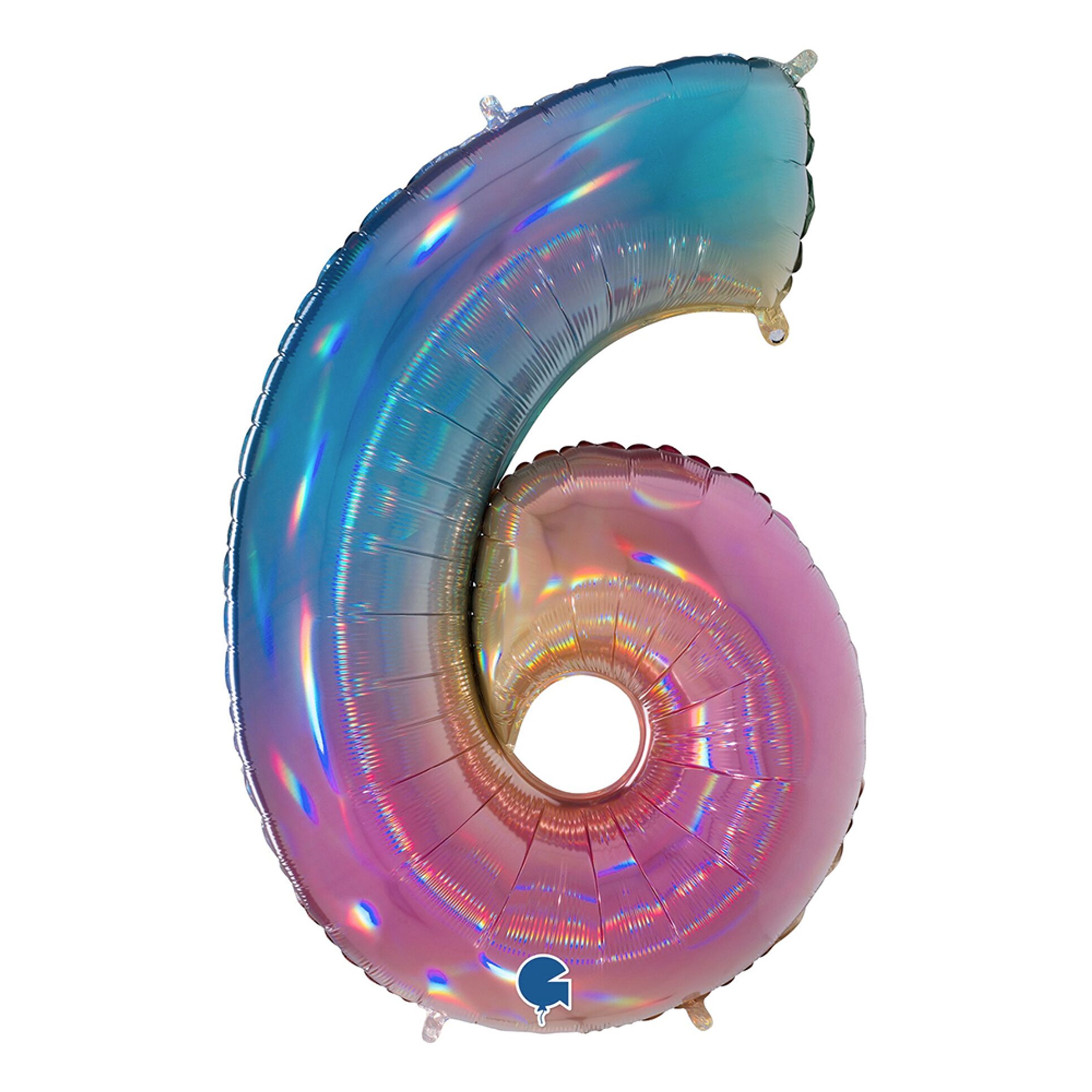 Sifferballong Regnbåge säljs styckvis och finns i siffrorna 0 till 9. Varje siffra glimrar i regnbågens alla färger. Varje sifferballong mäter hela 86 cm stor och passar lika bra till 1-årskalaset som till 100-årskalaset och jobbfesten.