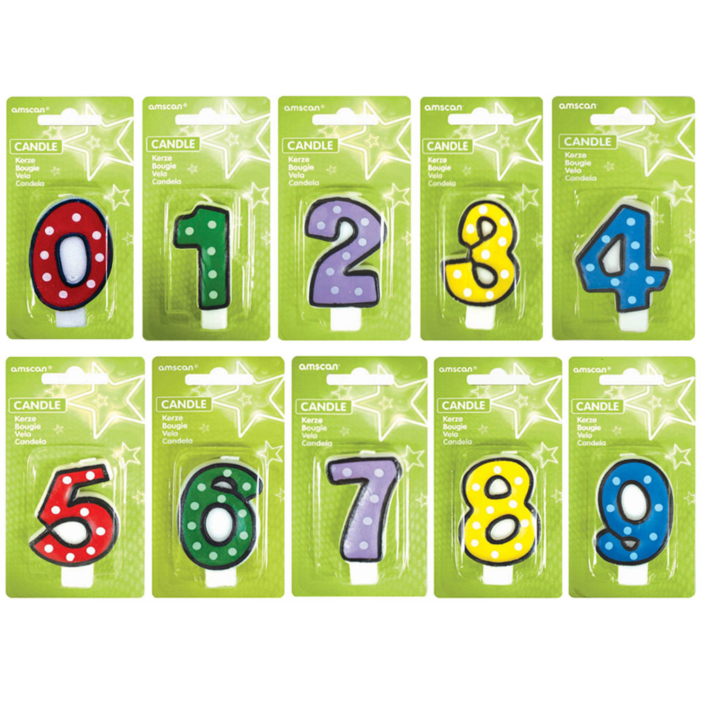 Sifferljus Dots består av fina sifferljus i olika färger med svarta kanter och vita prickar. Välj mellan siffrorna 0-9.