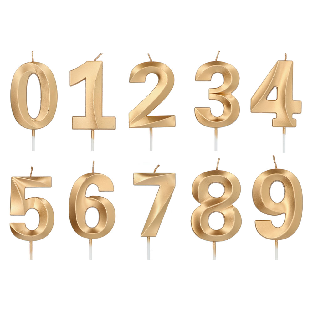 Sifferljus Metallic Guld omfattar tårtljus siffror i metallic guldfärg. Ljusen är ca 7 cm höga och har en liten plastdel som enkelt sätts i tårtan. Finns i siffrorna 0-9.