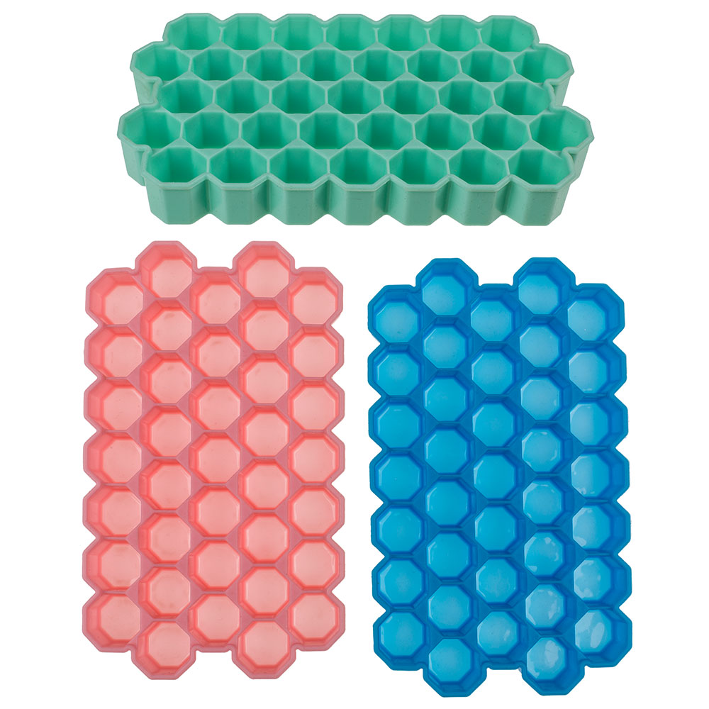 Silikon Isbricka Octagon omfattar en isbricka som har plats för 37 stycken åttasidiga isbitar. Finns i färgerna röd, grön eller blå, vilken du får slumpas.