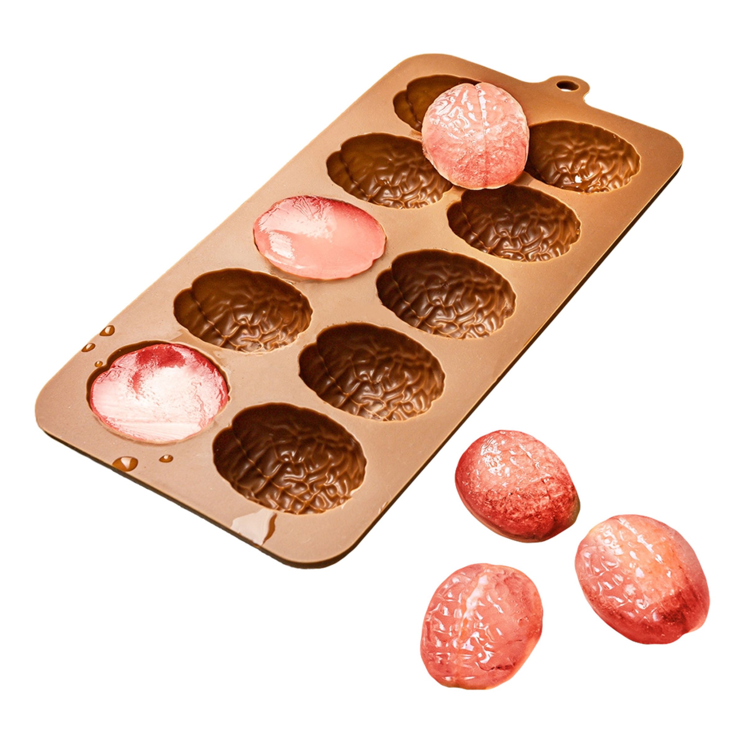 Silikonform Hjärnor är en isform som producerar totalt 10 stycken "hjärnor" som passar utmärkt för att frysa såväl isbitar som till att göra choklad eller gelé. Formarna tål både djupfrysning och höga ugnstemperaturer. Perfekt att använda till halloween-drinkarna eller för att baka choklad!