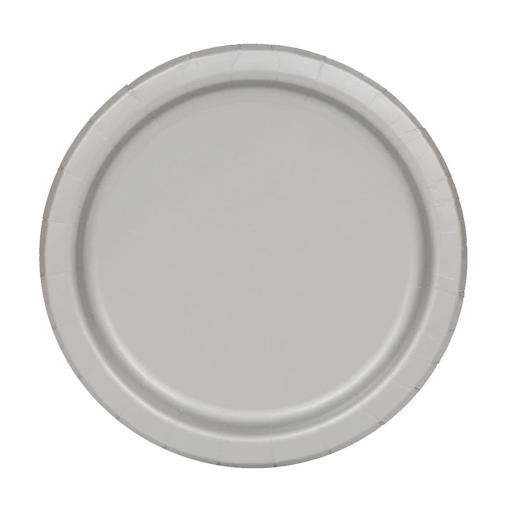 Silver Assietter omfattar 20 st engångsassietter i silver. Assietterna är tillverkade av papp och mäter ca 18 cm i diameter.