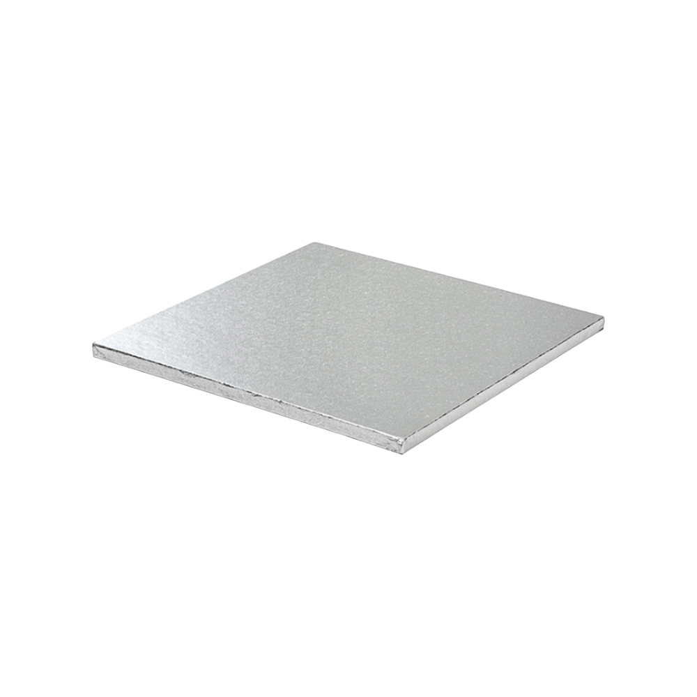 Silver Tårtbricka Fyrkantig 20cm består av ett tårtfat i stadig kartong belagd med aluminium. Fatet har en längd och bredd på cirka 20 centimeter och en höjd på 1 centimeter.