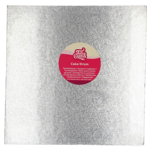 Silver Tårtbricka Fyrkantig 33 cm består av ett tårtfat i stadig kartong belagd med aluminium. Fatet har en längd och bredd på cirka 33 centimeter och en höjd på 1 centimeter. Säljs styckvis.