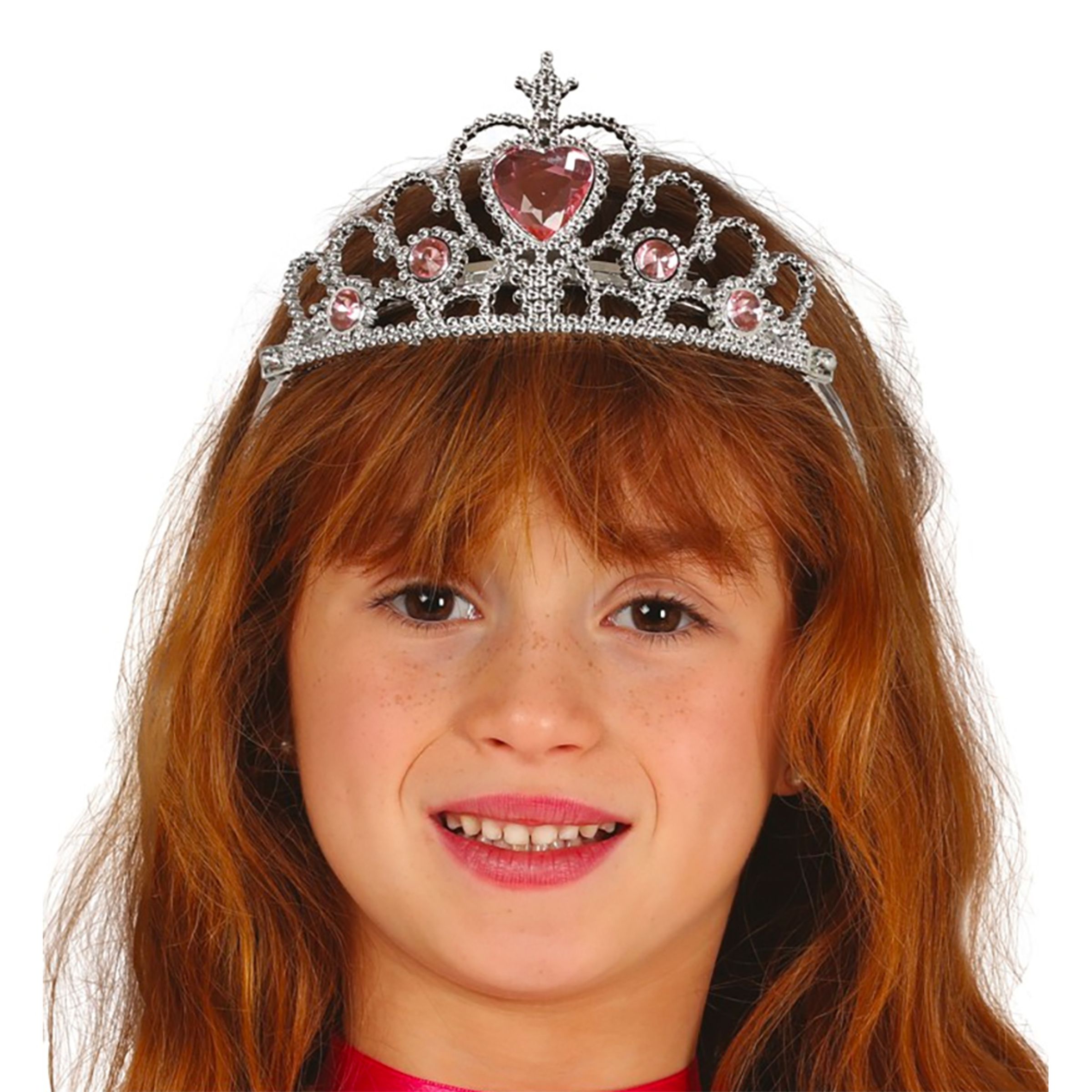 Silver Tiara med Rosa Stenar är precis som vad behövs om det ska lekas kungahus där hemma! Tiaran blänker i silver och pryds av rosa stenar.