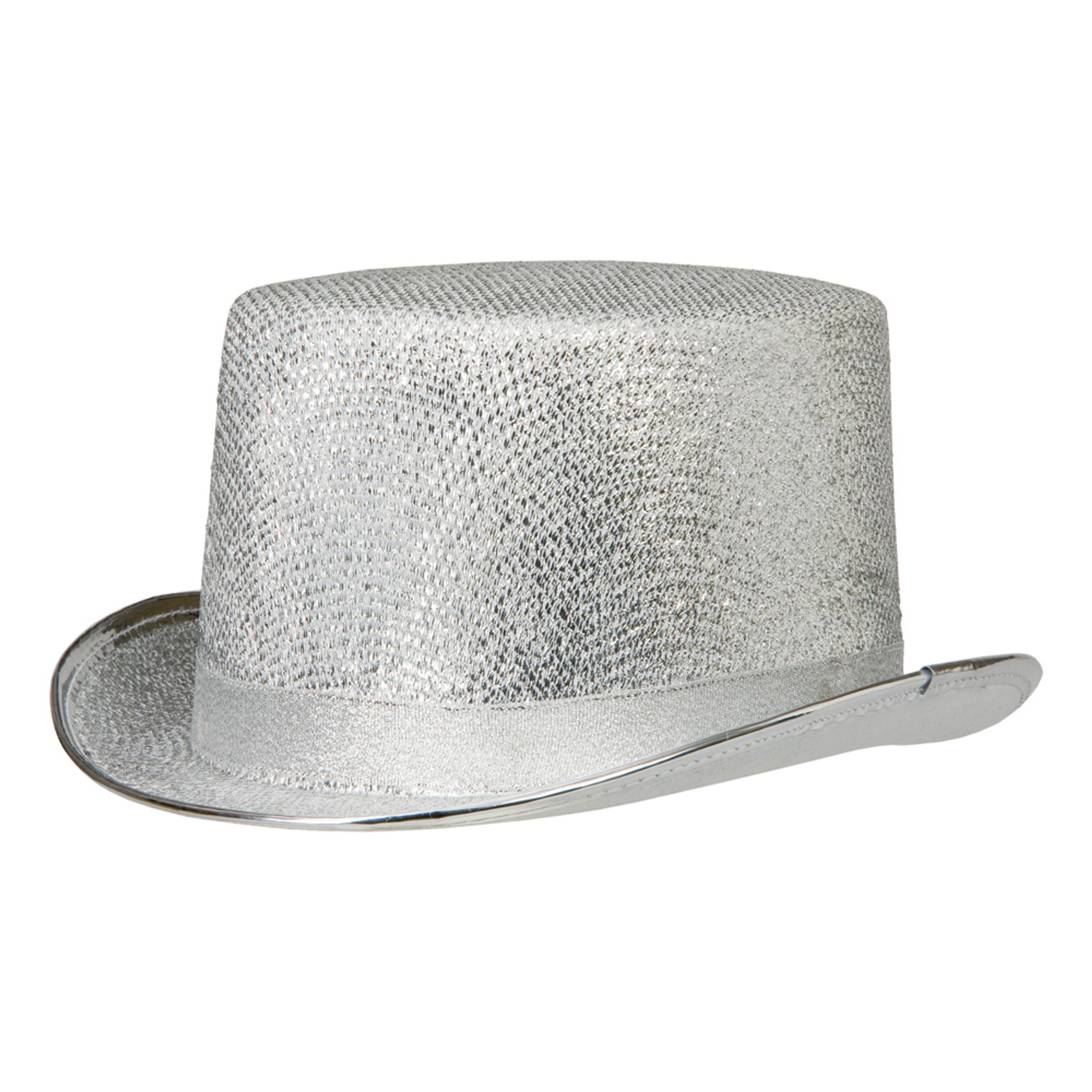 Silverhatt är en snygg cylinderformad glitterhatt med matchande silvrigt satinliknande band runt brättet. Den perfekta hatten för maskerad, nyår- och hattfester!