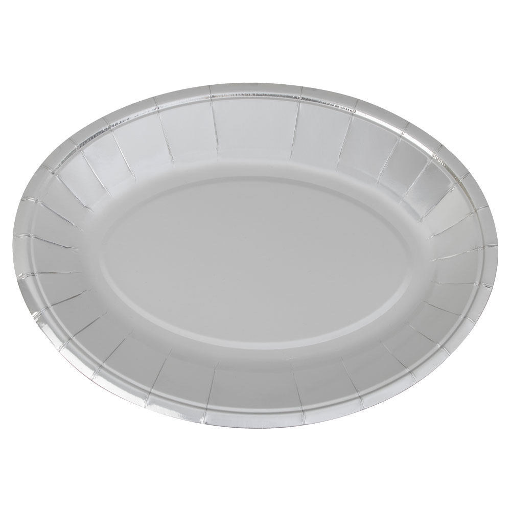 – Engångsfat i skimrande silver.