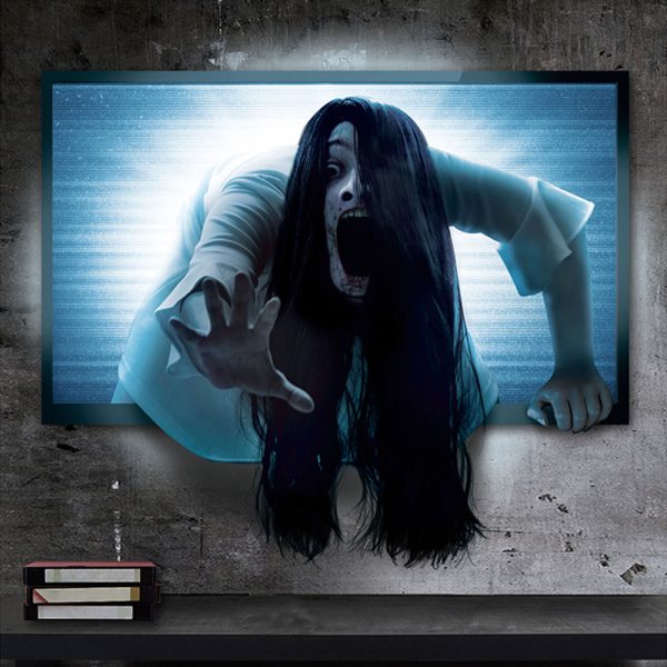 Ge din Halloweenfest en skrämmande atmosfär med en väggdekoration som får gästerna att rysa på Halloween. Den självhäftande väggdekorationen med en skräcktjej som kliver ut ur TV-skärmen är perfekt som dekoration och skapar oförglömliga ögonblick på din nästa Halloweenfest.