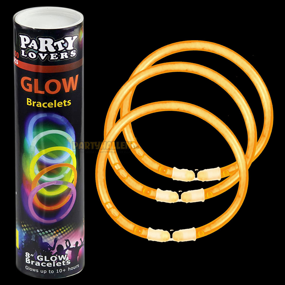Det ultimata partytillbehöret för alla fester! Med dessa självlysande armband i snyggt orange får du enkelt till den rätta feststämningen på nolltid. Riktigt häftiga glowsticks armband som du kan använda för att både snygga till din klädsel och dekorera festen med. De kan även mixas och matchas med andra glow in the dark prylar i olika färger för en riktigt färgsprakande och självlysande fest.