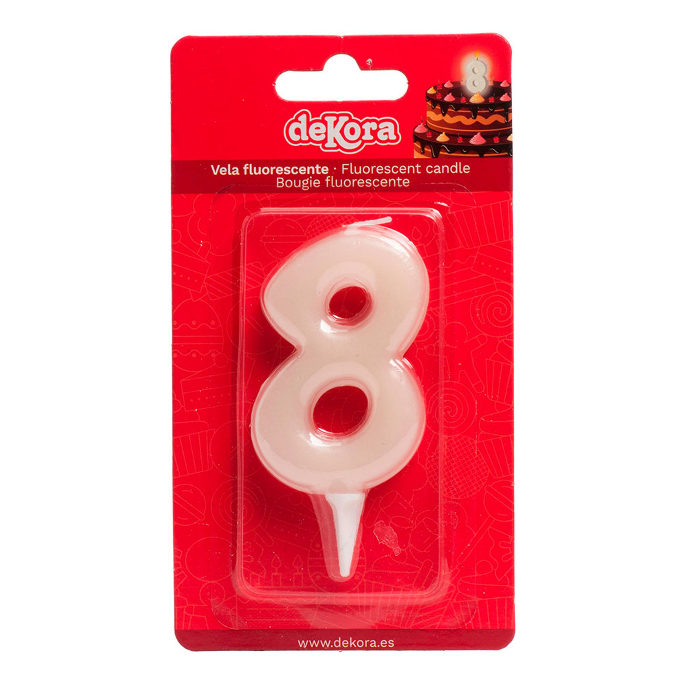 Självlysande Tårtljus kommer i form av siffrorna 0-9 i färgen vit. Ljuset står på en plasthållare som gör det enkelt att sticka ner den i tårtan. Ljuset är ca 6 cm högt.