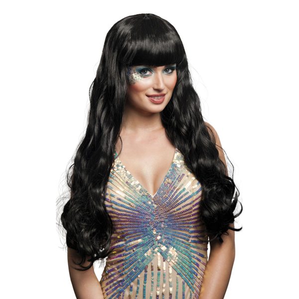Klä ut dig till Kety Perry, en sjöjungfru eller någon helt random person med långt svart hår. Den här peruken är vacker och naturtrogen. Den har kortklippt lugg och långt svallande hår.