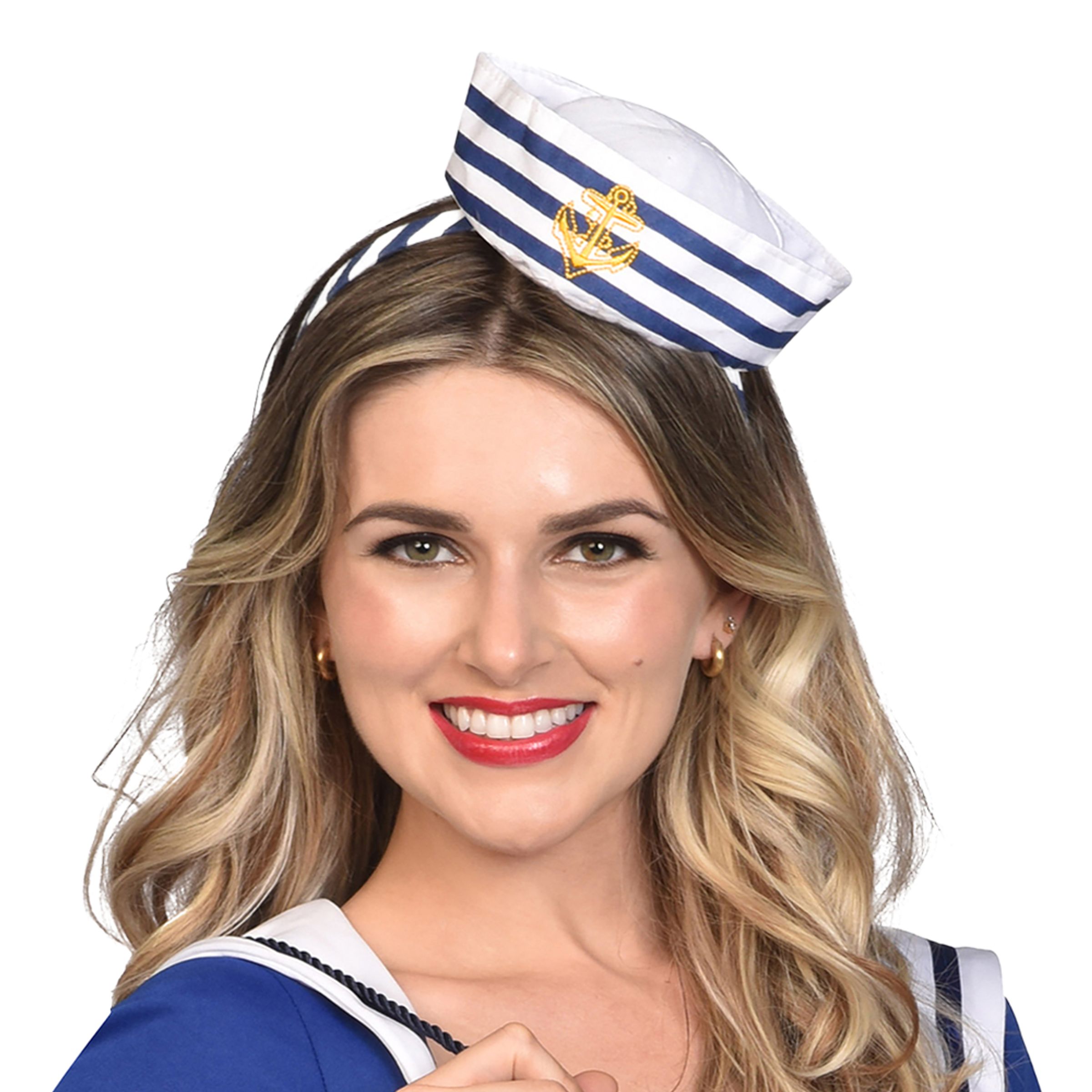 Skepp o'hoj matros! Dags att ge sig ut på nya spännande världsomseglingar? Inte utan din älskade sjömanshatt! Den här varianten sitter på ett diadem så att den inte flyger av när havsbrisen rullar in – smart va?