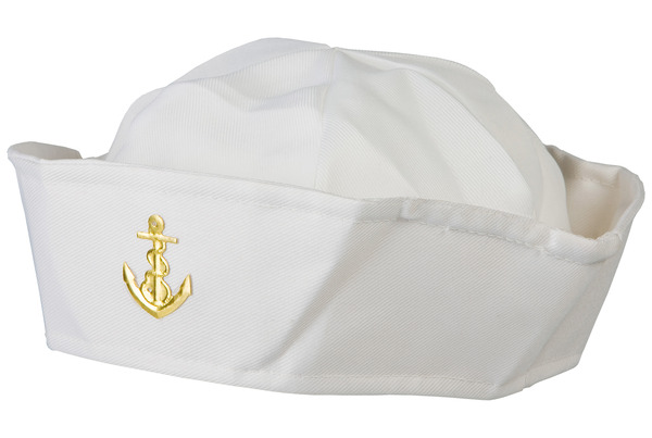 Sjömanshatt omfattar en vit sjömanshatt av polyester med guldigt ankarmotiv framtill. Passar vuxna.