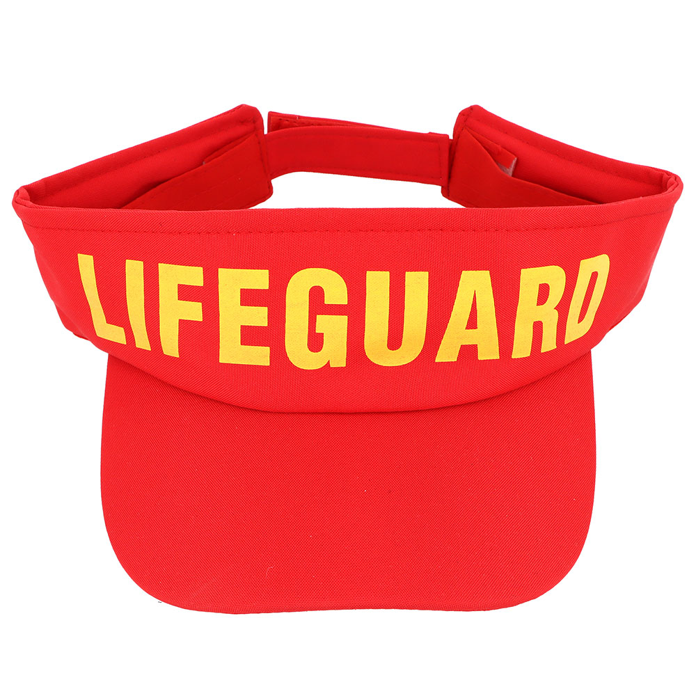 Skärmkeps Lifeguard omfattar en röd skärmkeps med texten 'Lifeguard' tryckt i gul färg. Kepsen har kardborre baktill så du enkelt kan justera den för bästa passform.