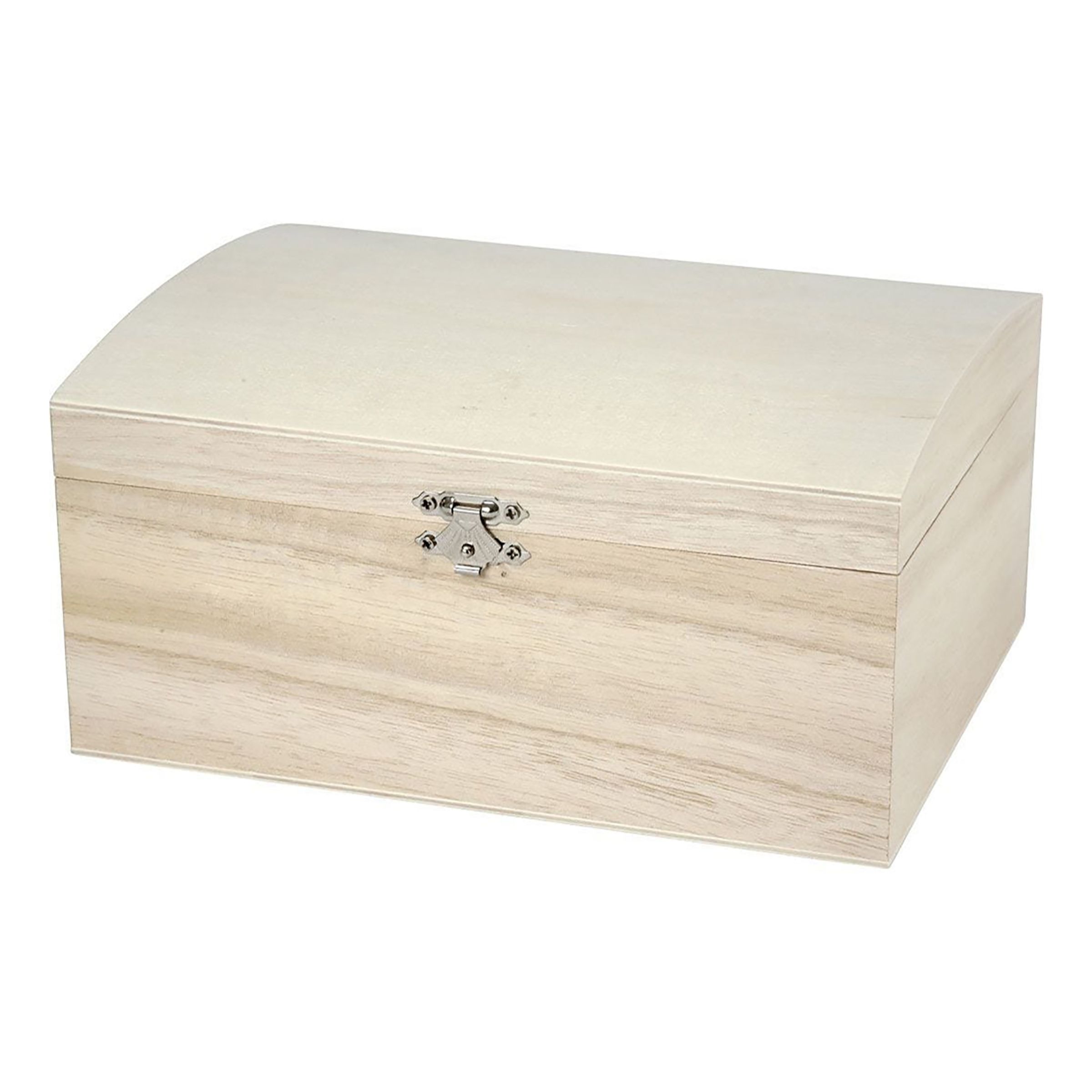 Skattkista i Trä är en söt skattkista med böjt lock och metallspänne som du kan färglägga och dekorera efter tycke och smak. Finns i liten och stor storlek