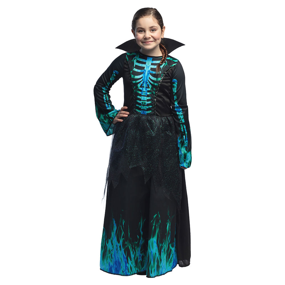 Glid in på Halloween fest och Day of the dead maskerad i en elegant svart och blå skelett klänning, ett måste för alla barn som vill ha en cool dräkt till firandet. Med en både fin och häftig skelett-klänning och kostym blir ditt barn mer än redo för festligt firande, perfekt utklädnad för alla som vill vara ett skelett med stil.