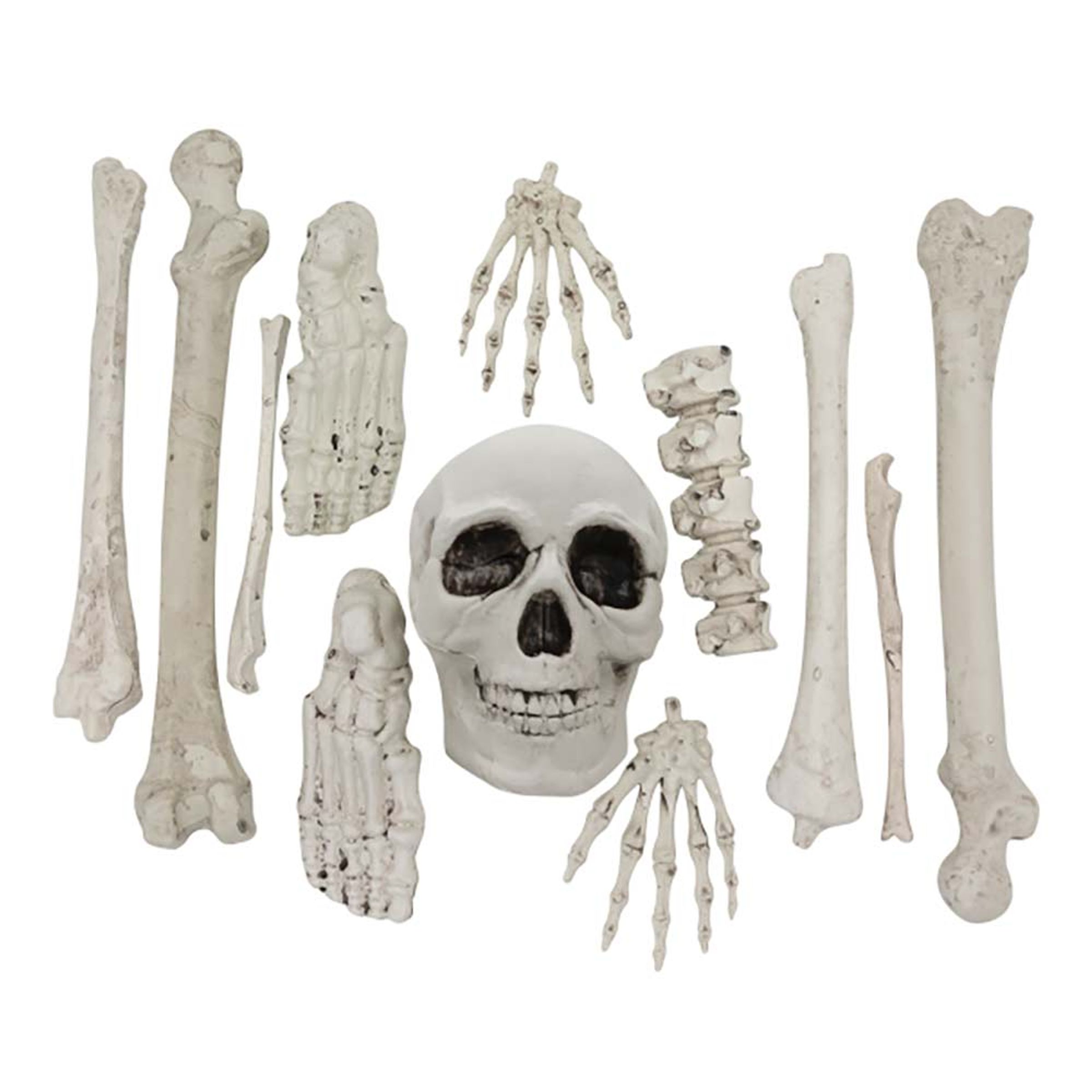 Glöm inte att införskaffa skelett till din halloweenfest! Här har du en ypperlig hög med skelettdelar som du kan pynta hemmet med. Lite ben här, lite skelettfötter där och kanske dödskallen får pryda halloweenbordet? Eller varför inte sprida ut alla delar på gräsmattan? Endast fantasin sätter dina gränser!
