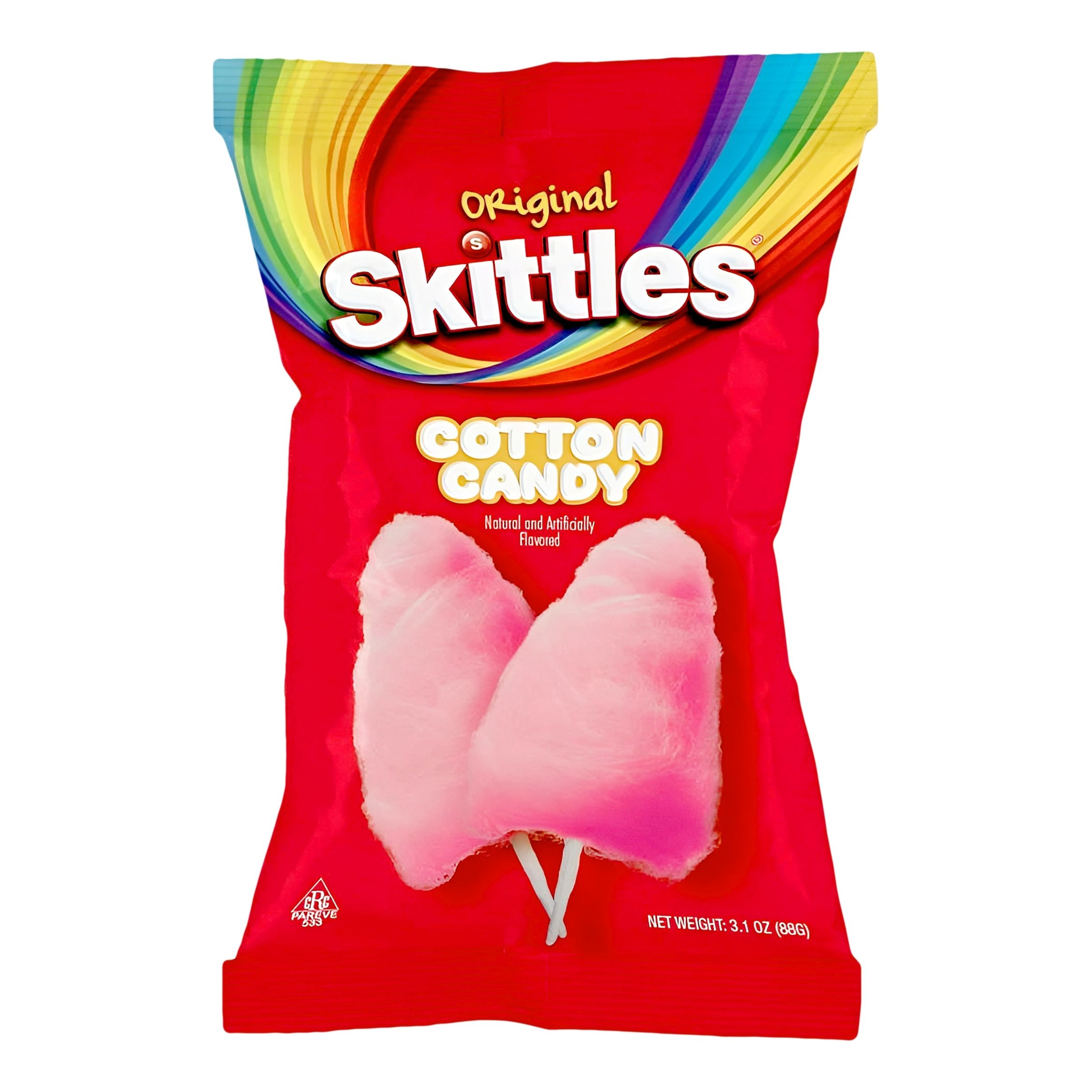 Skittles Cotton Candy säljs i påse om 88 gram.