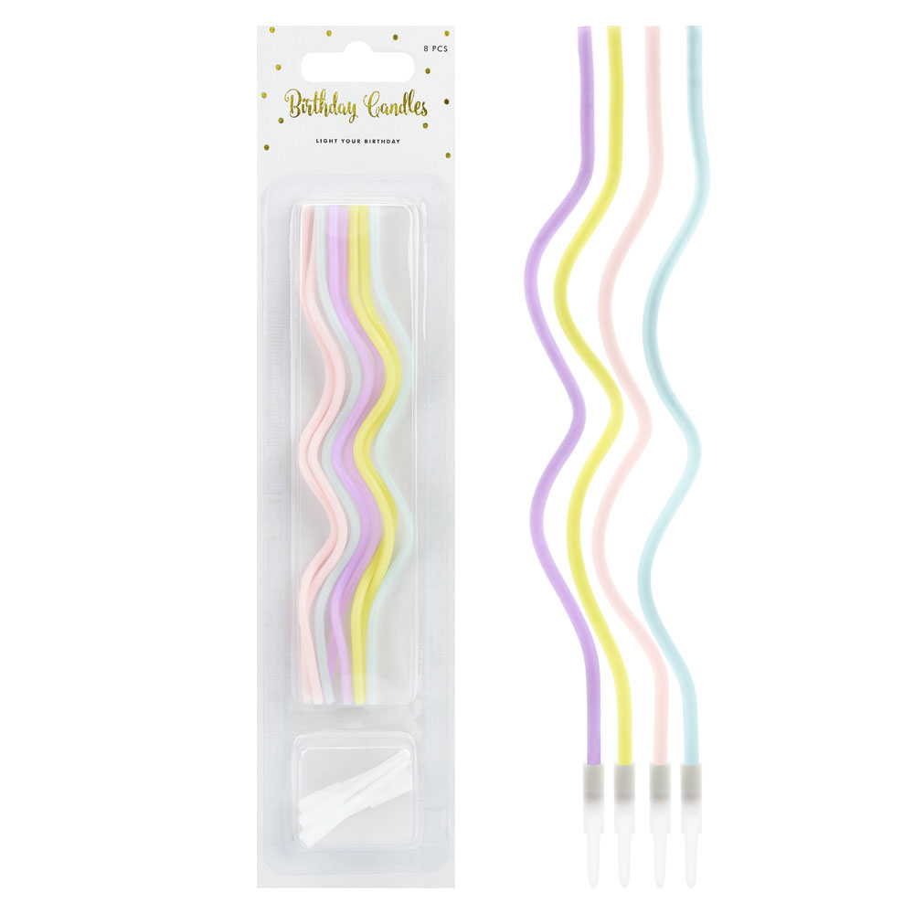 Om du önskar att dekorera din tårta med en riktigt färgsprakande tårtdekoration så är dessa skruvade tårtljus i fem olika pastellfärger det solklara valet! Pynta tårtan eller kanske ett gäng muffins med de här tårtljusen strax innan servering för en lite extra festlig detalj till kalasfikat.
