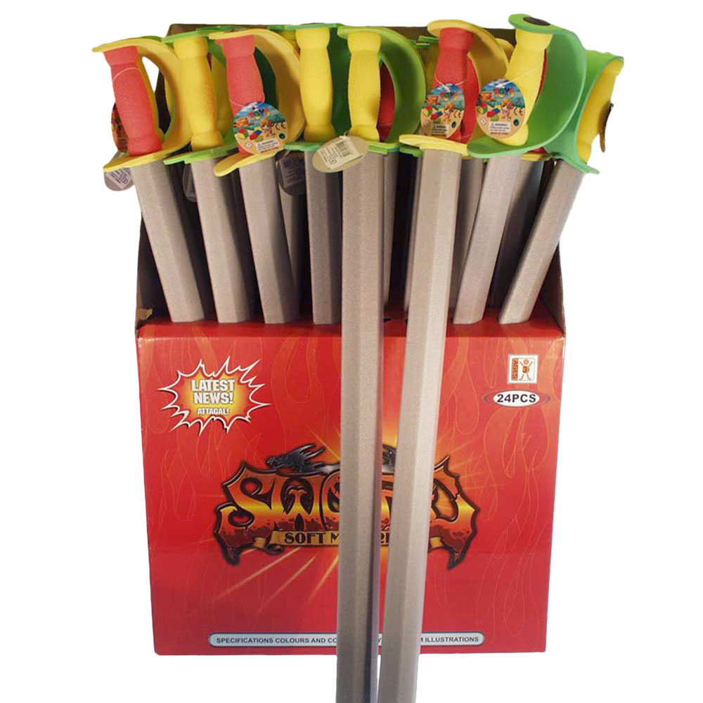 Skumgummi Leksakssvärd omfattar ett leksakssvärd tillverkat i skumplast. Svärdet finns i färgerna gul/grön, blå/röd eller röd/blå, vilken du får blir en överraskning.