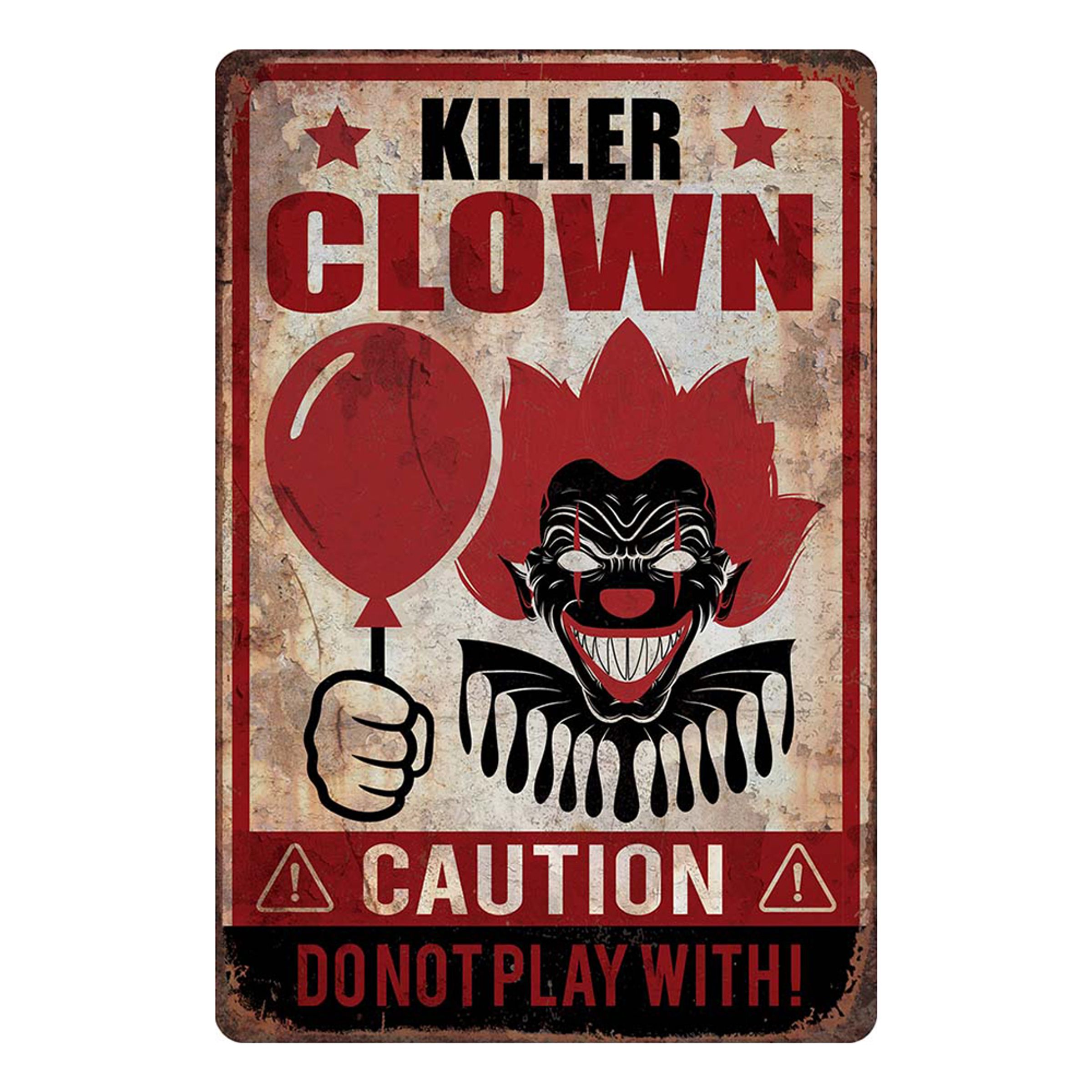 Skylt Killer Clown är en varningsskylt för clowner. Perfekt dekoration till halloweenfesten som bidrar med viktig information till gästerna!