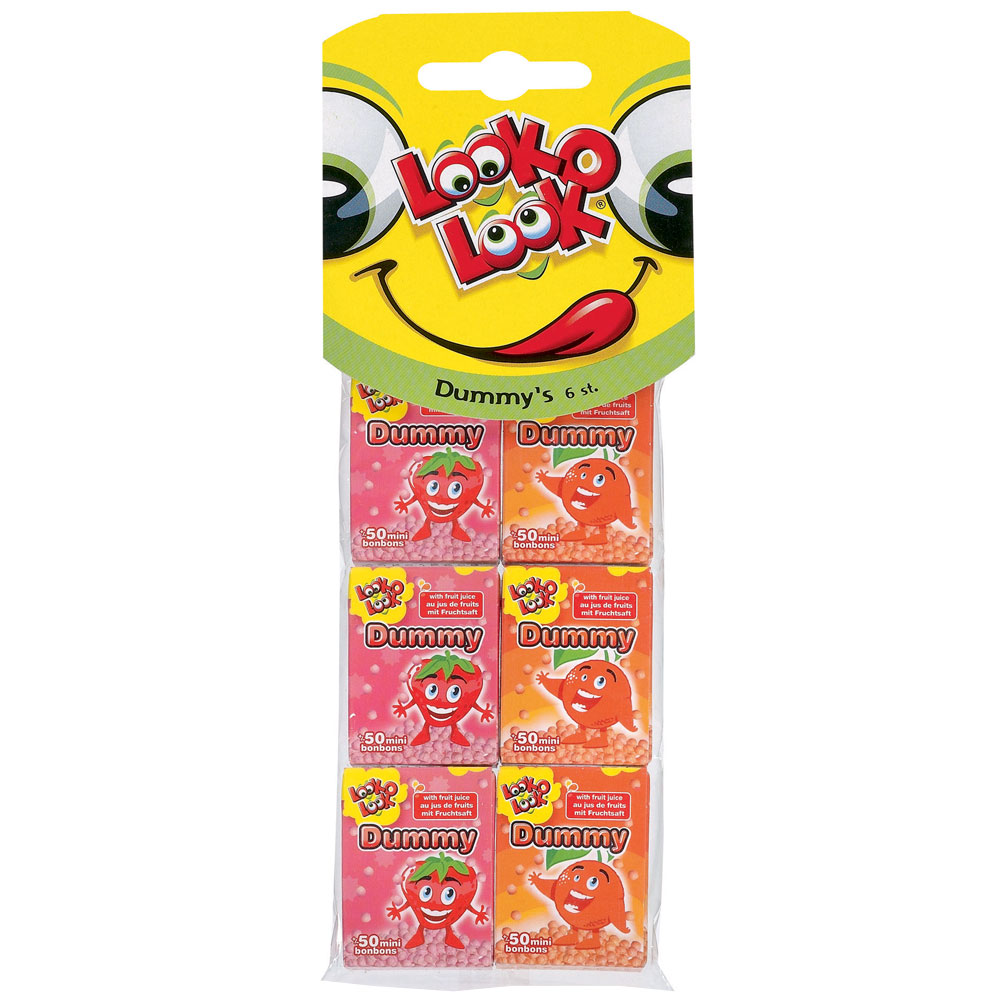 Små Dummy Tablettaskar innefattar en förpackning med flera små tablettaskar med godis med fruktsmak.