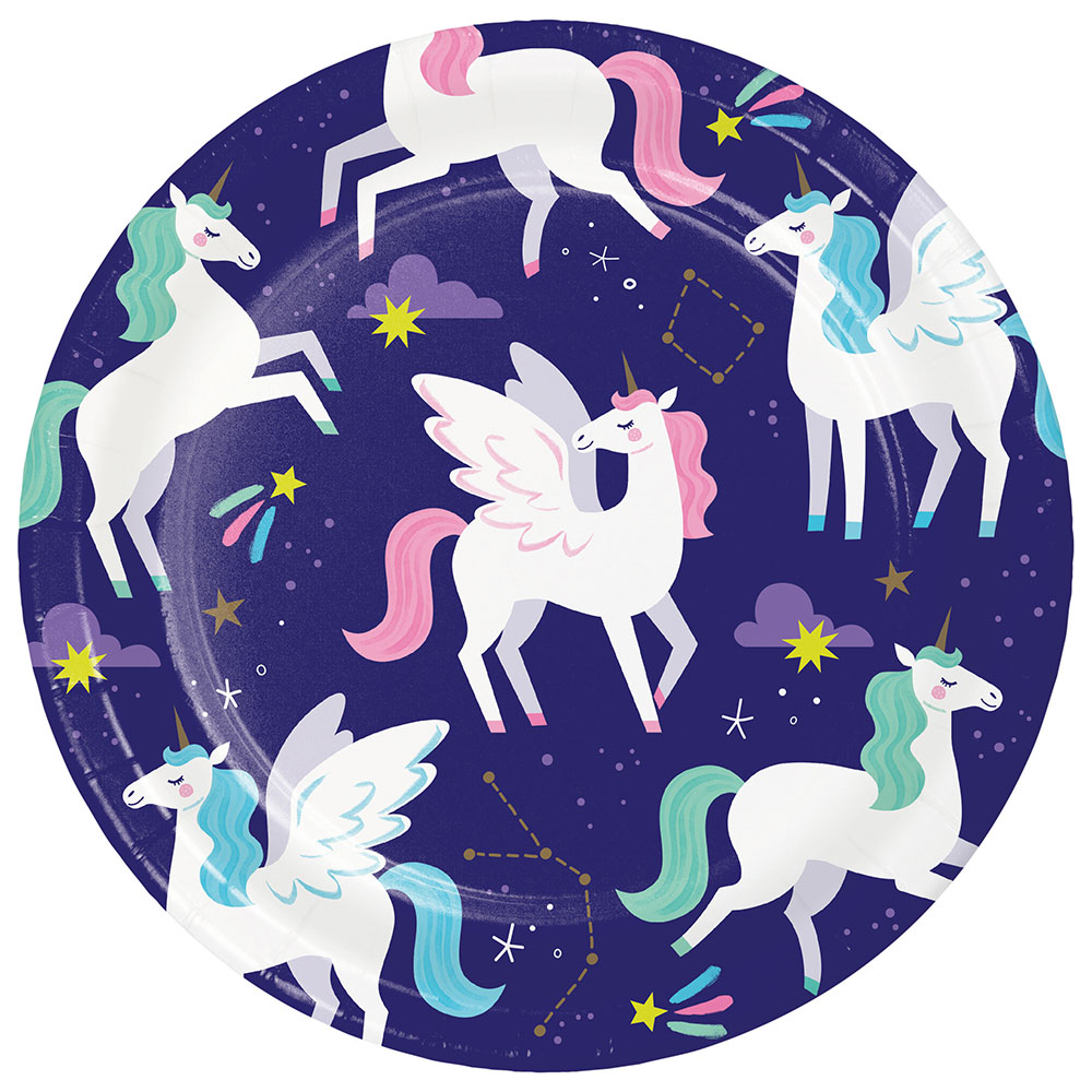 Planerar du ett signatur-enhörnings-kalas tema? Dessa magiska unicorn papperstallrikar är perfekta för firandet! Med ett lekfullt enhörningsmotiv och inspirerande stjärndekoration, kommer de att tillföra extra charm till din festdukning. Ett perfekt komplement till din övriga enhörning dekoration, ger dessa papperstallrikar enhörning en touch av elegans och underlättar dessutom städningen efteråt – så du kan ägna mer tid åt festandet! Unicorn dekoration på sitt absolut bästa.