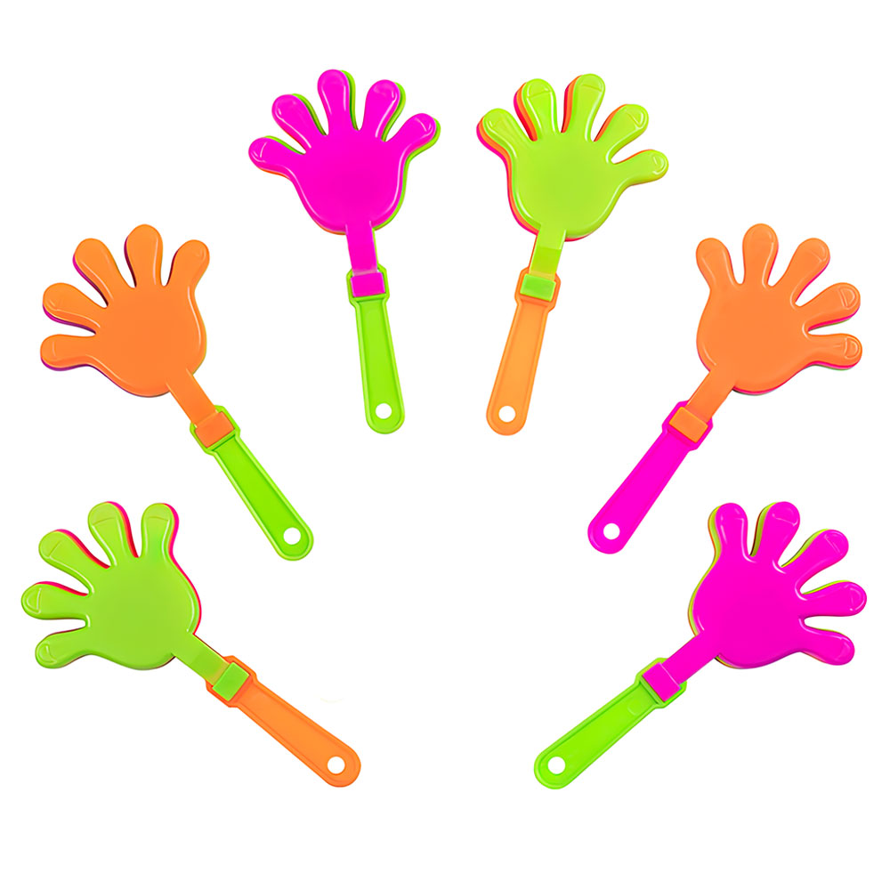 Små och skojiga handklappare i neon som passar perfekt som roligt tillbehör i kalaspåsen, ett kit med toppenkul små leksaker att vifta med och få fram klappande ljud, med en handklappa blir allting lite roligare, perfekt kalasleksaker som även passar bra att ha med vid olika events som match och konsert.