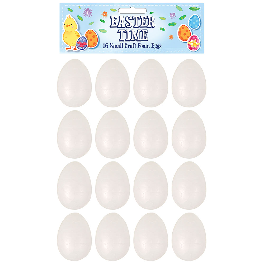 Små Pysselägg Vita omfattar 16 st vita, små ägg för pyssel. Äggen är i frigolit och mäter ca 4 cm.