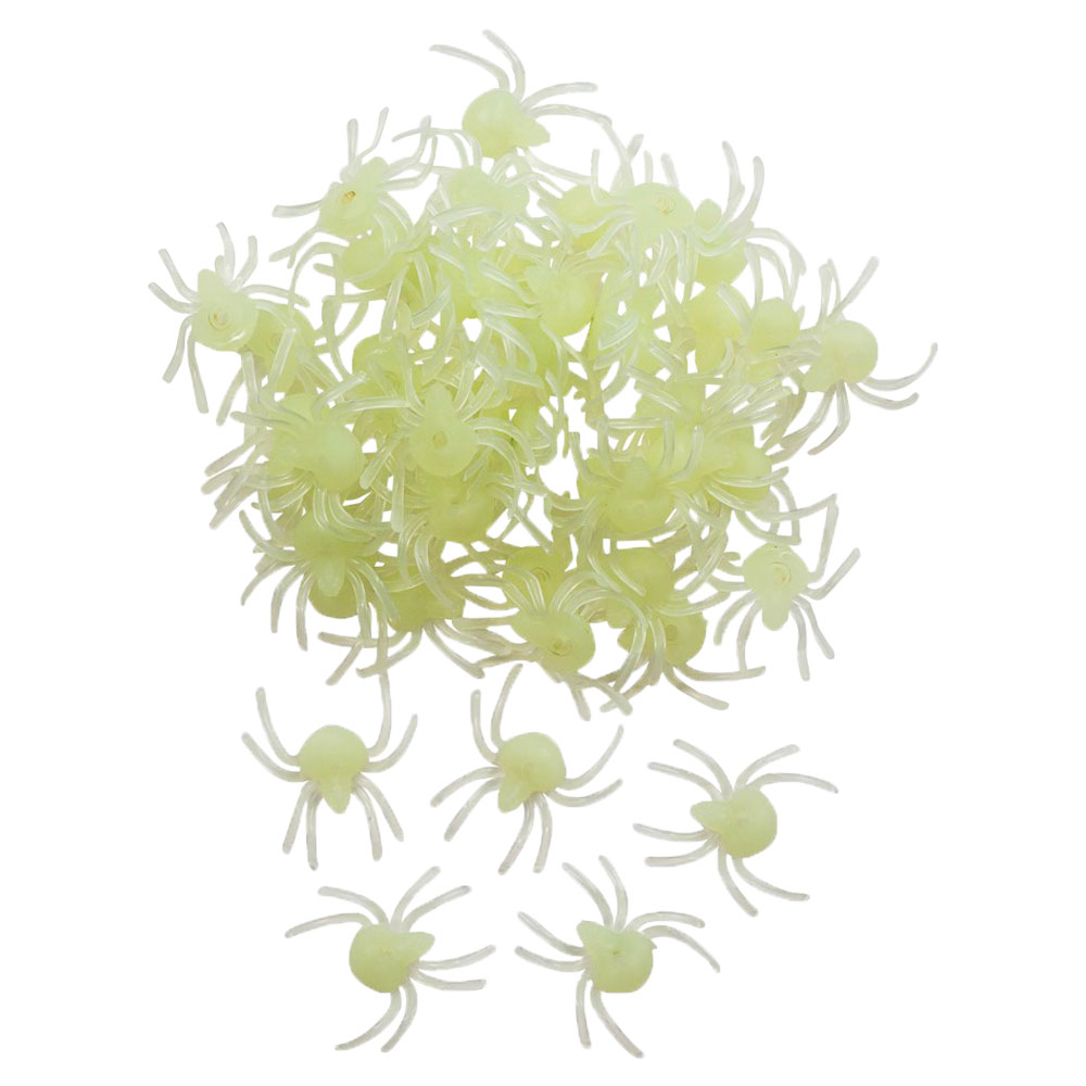 Små Självlysande Spindlar 50-pack omfattar 50 st små glow in the dark spindlar av plast. Spindlarna måste laddas med ljus för att de ska lysa i mörkret.