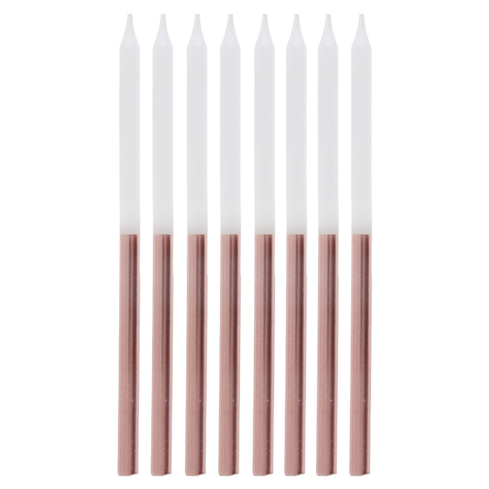 Info om Smala Tårtljus Roseguld/Vit: