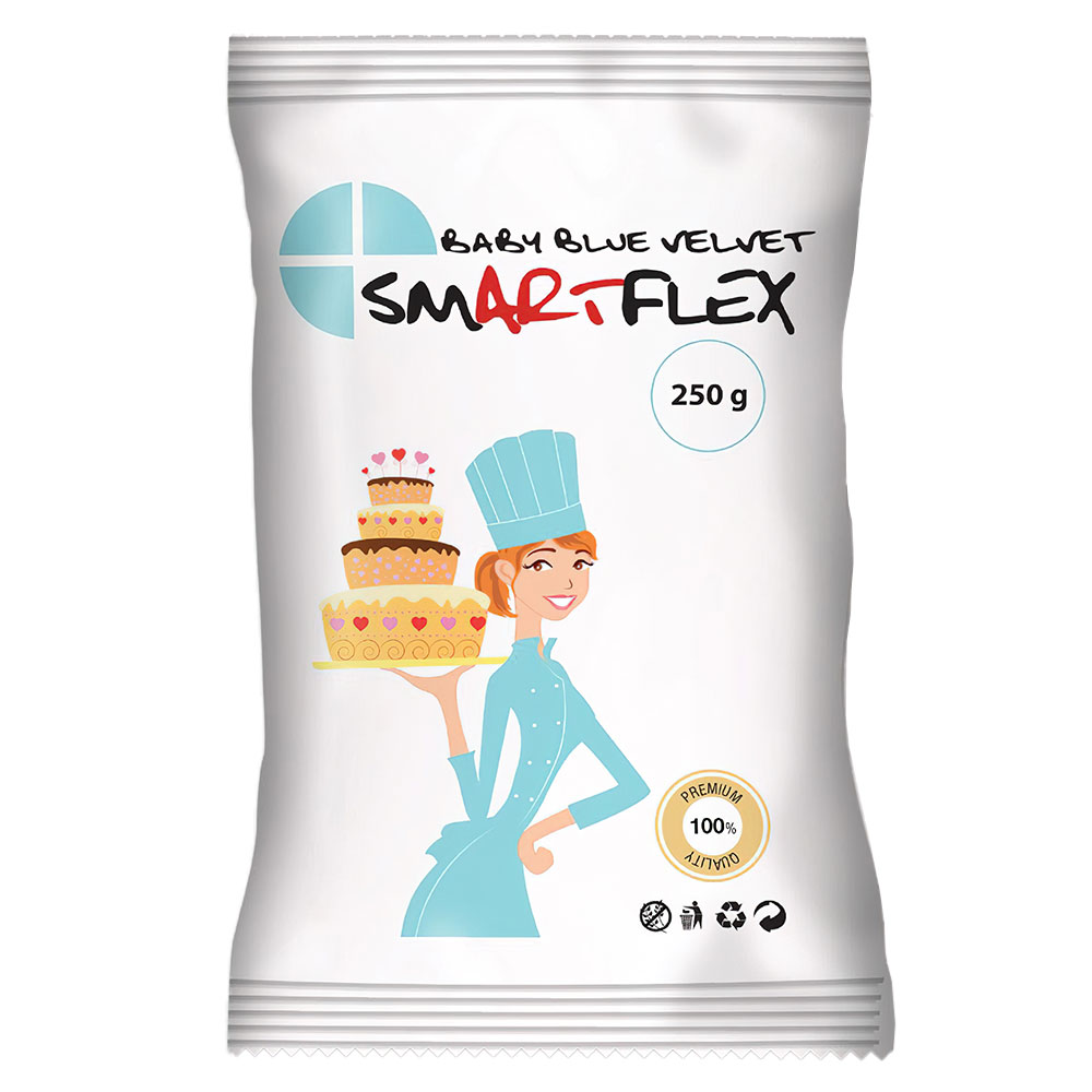 SmartFlex Sockerpasta Baby Blå 250 gram består av 250 gram baby blå sockerpasta med vaniljsmak och sammetslen yta.