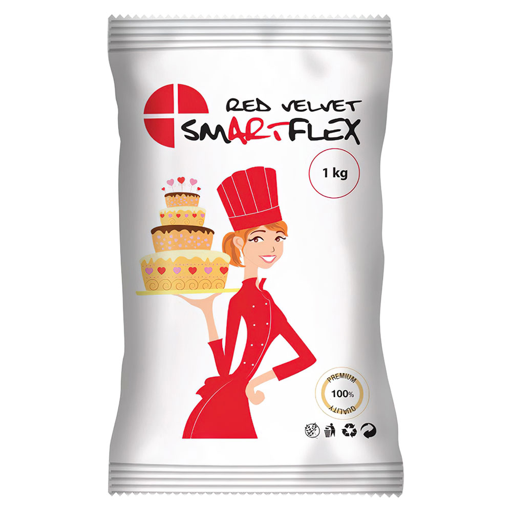 SmartFlex Sockerpasta Röd 1 kg består av 1 kg röd sockerpasta med vaniljsmak och sammetslen yta.
