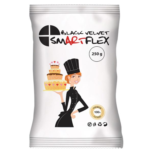SmartFlex Sockerpasta Svart 250 gram omfattar 250 gram svart sockerpasta med vaniljsmak och sammetslen yta.
