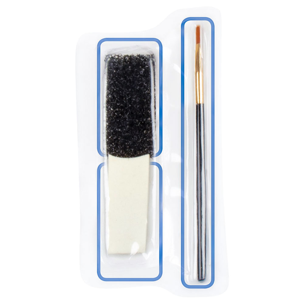 Sminkpensel & Sminksvampar Set omfattar ett set med en smal sminkpensel, en slät sminksvamp och en grövre sminksvamp. Använd penseln för mindre detaljer, den släta svampen för jämn applicering och den grova svampen för applicering med textur.