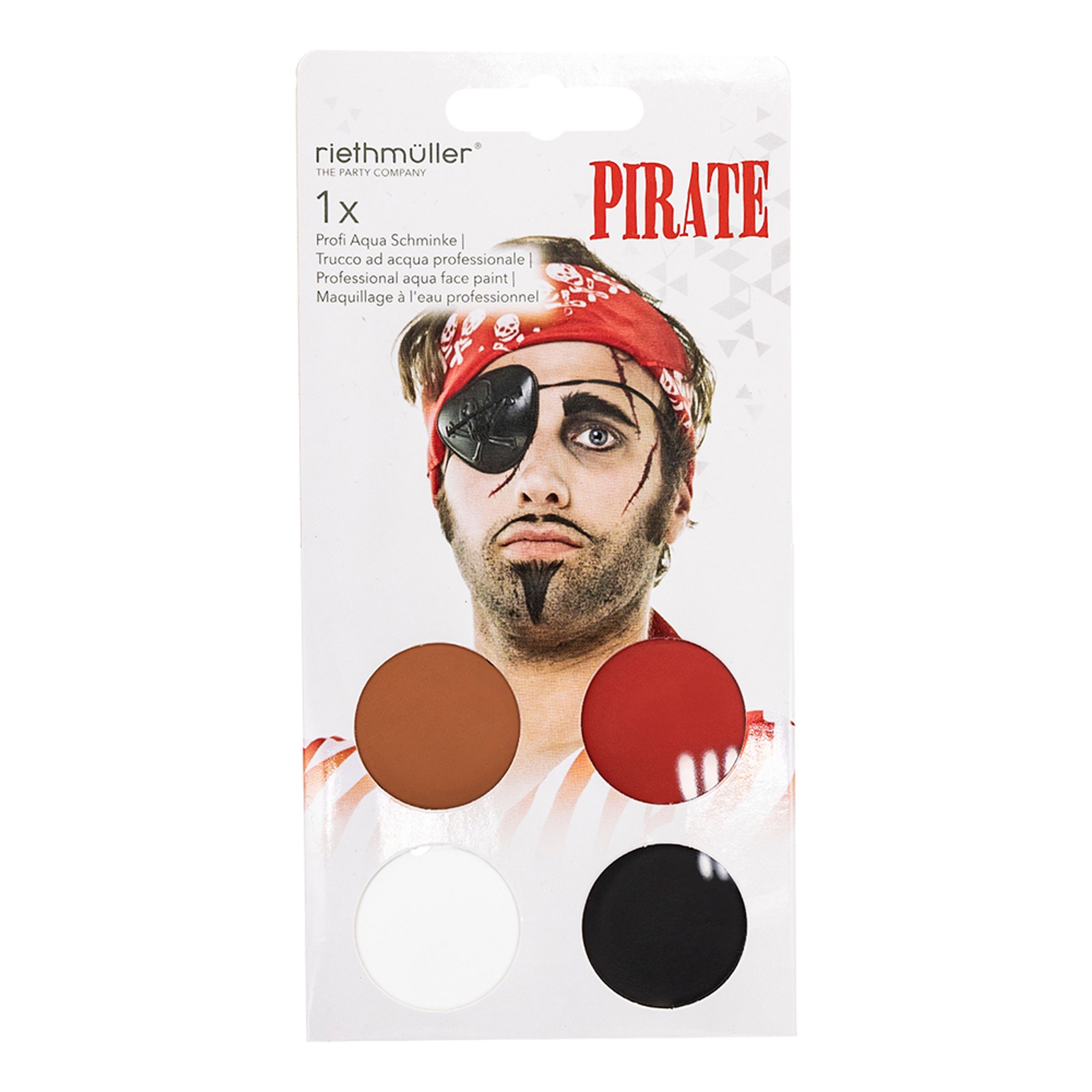 Sminkset Pirat inkluderar en sminkpensel och fyra olika färger som passar utmärkt att använda för att göra en komplett piratsminkning. Perfekt till såväl piratmaskeraden som till barnkalaset med pirattema!