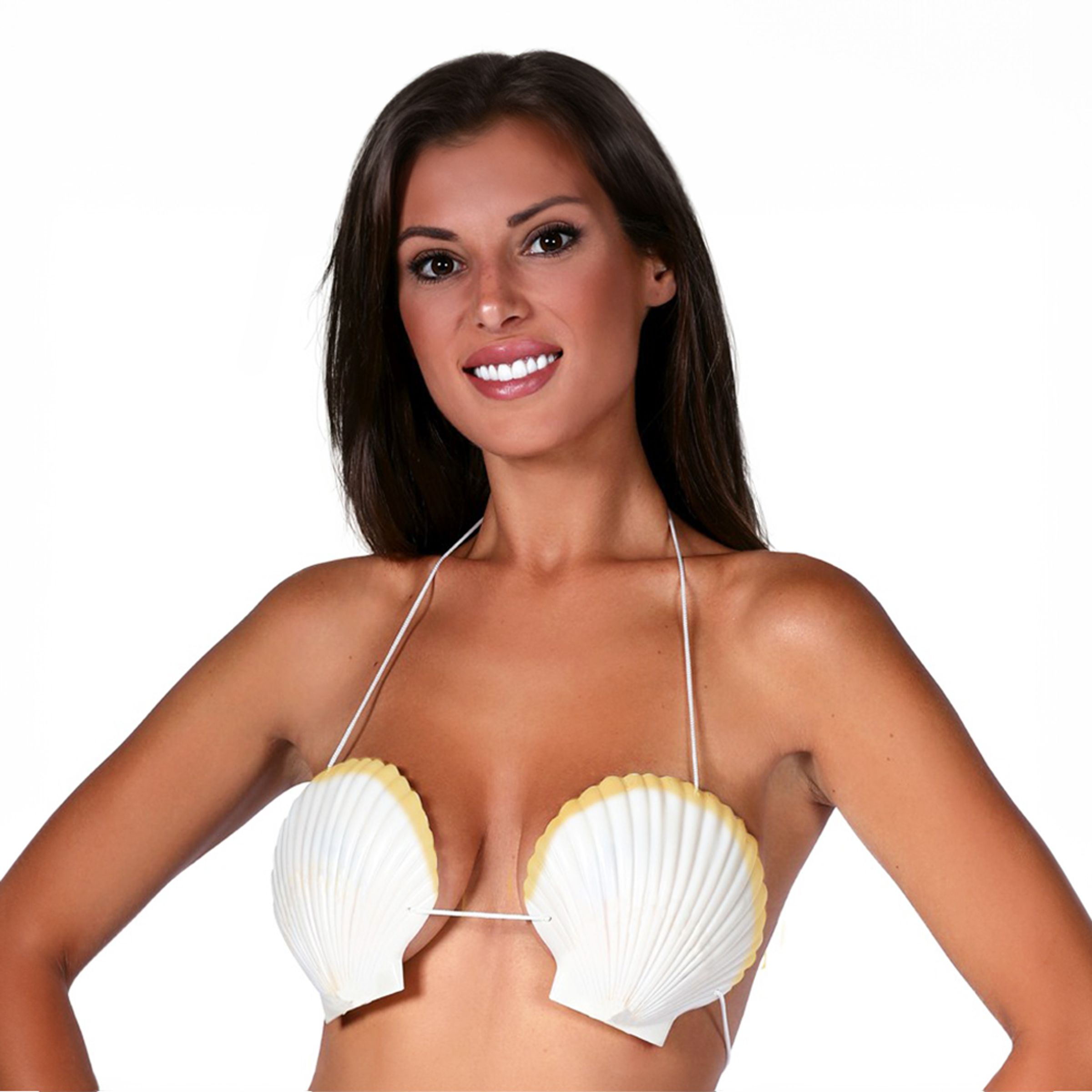 Snäckskal Bh är en cool detalj för dig som ska klä ut dig havsdrottning eller liknande. Snäckorna hålls på plats tack vare snöret som du trär bakom nacken. Komplettera med fena!