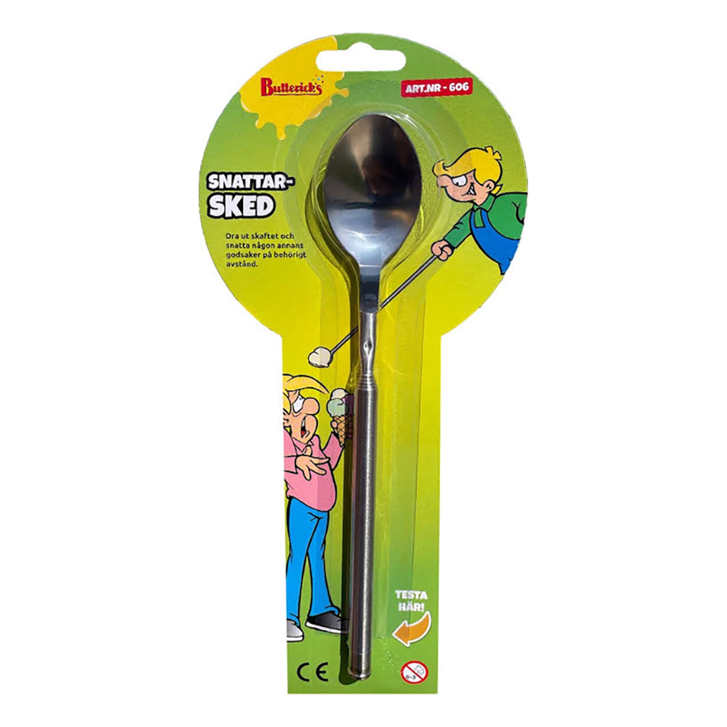 Snattarsked Skämtartikel är en teleskopisk sked som du lätt drar ut och snabbt kan knycka familjens mat med när de inte ser. En rolig skämtartikel att använda på julbordet eller ge bort i present till din mest humoristiska vän.