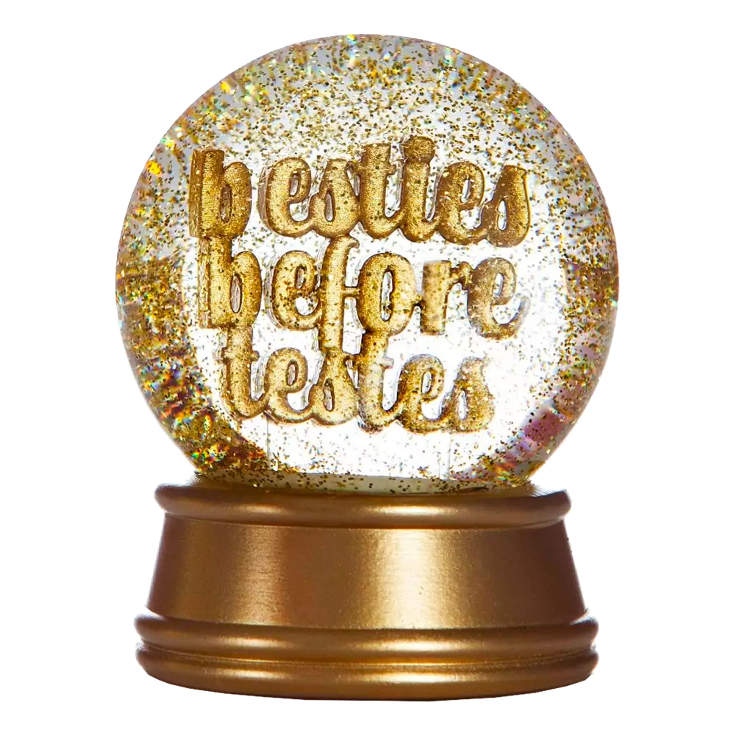 Snöglob Besties Before Testies är en glitterfylld snöglob som kommer med texten "Besties before testies". En riktigt kul present att ge till kompisen som kanske behöver höra att bästisar kommer före killar – alla dagar i veckan.
