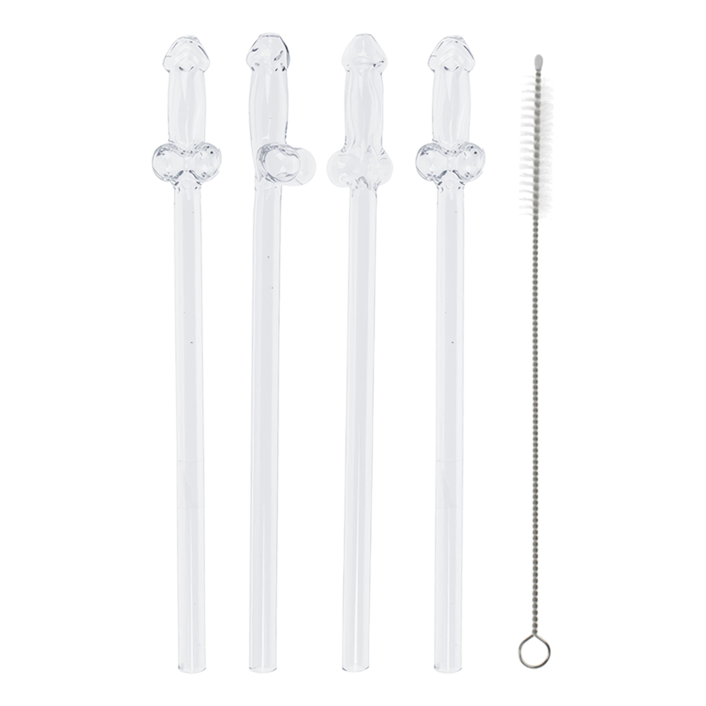 Snoppsugrör i Glas med Rengöringsborste inkluderar fyra stycken sugrör formade som snoppar. I förpackningen finns också en rensare för enkel rengöring av sugrören. Sugrören är tillverkade i glas och är ömtåliga. Diska dem därför inte i maskin.