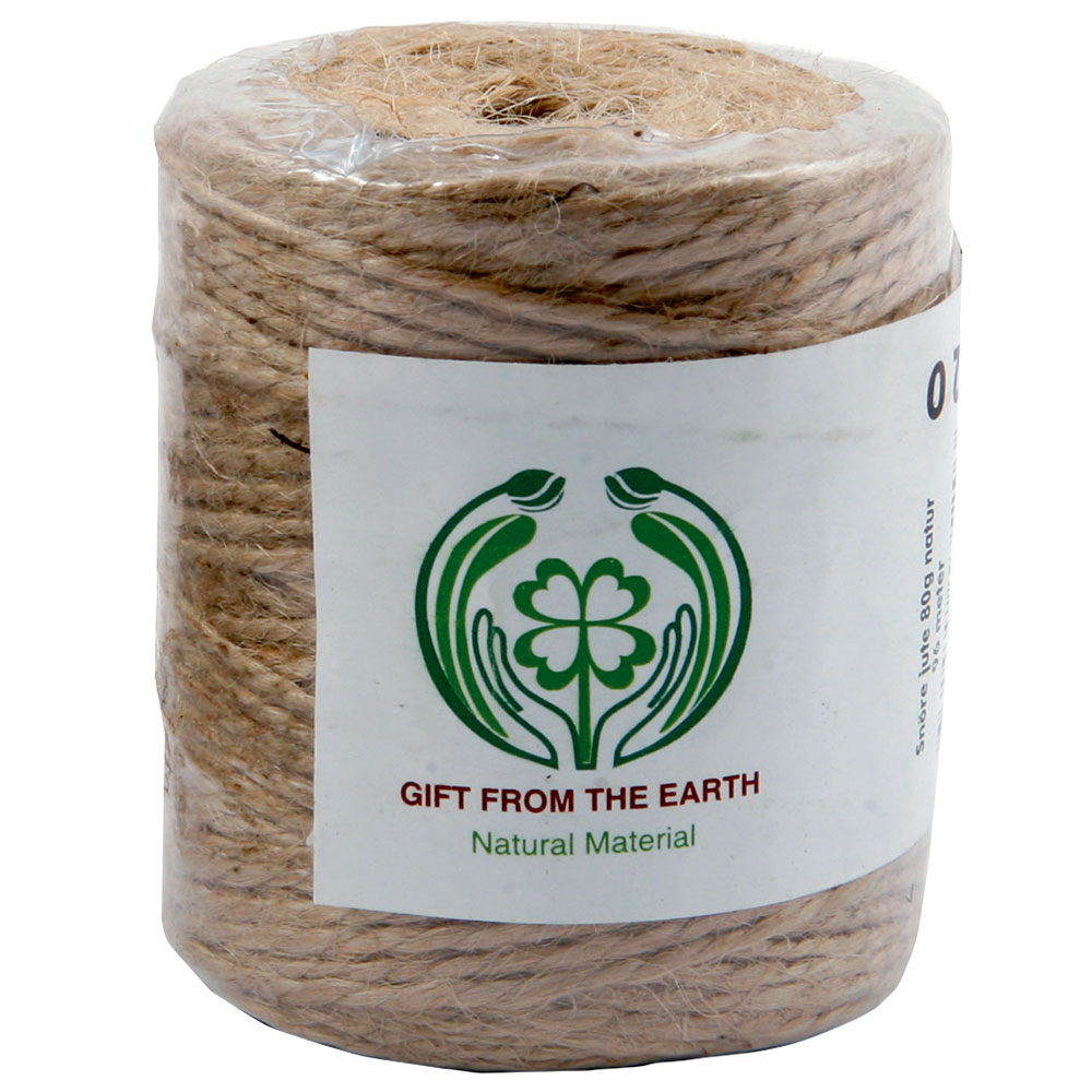 Snöre Jute Spole 177m omfattar ett snöre jute på spole som är på 177 meter. Snöret har 2-skikt, väger 500 gram, är gjort av naturliga material och är naturfärgat.