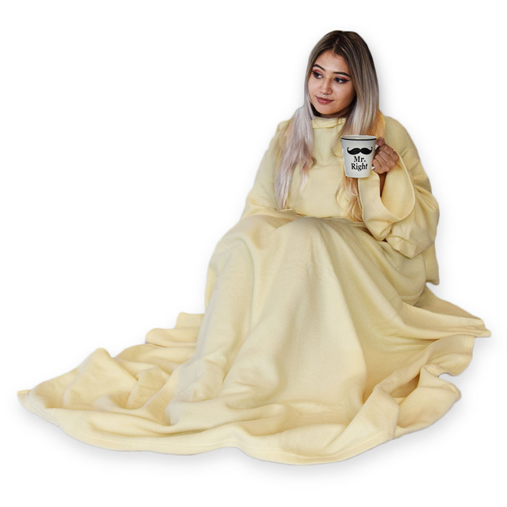 Snugs Fleecefilt med Ärmar Beige innehåller en beige fleecefilt med extra stora ärmar som håller dig varm och skön. Tillverkad av fleece.
