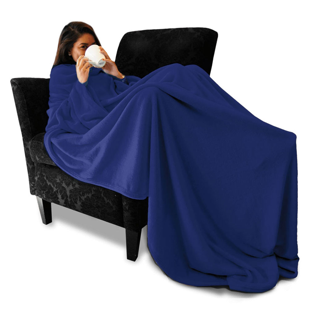 Snugs Fleecefilt med Ärmar Blå omfattar en blå fleecefilt med extra stora ärmar. Tillverkad av fleece.