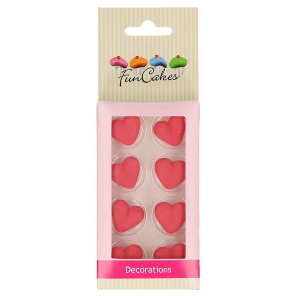 Sockerdekorationer Röda Hjärtan består av 8 stycken ätbara sockerdekorationer i form av röda hjärtan. Dekorationerna är glutenfria och är ca 2 x 2 cm.