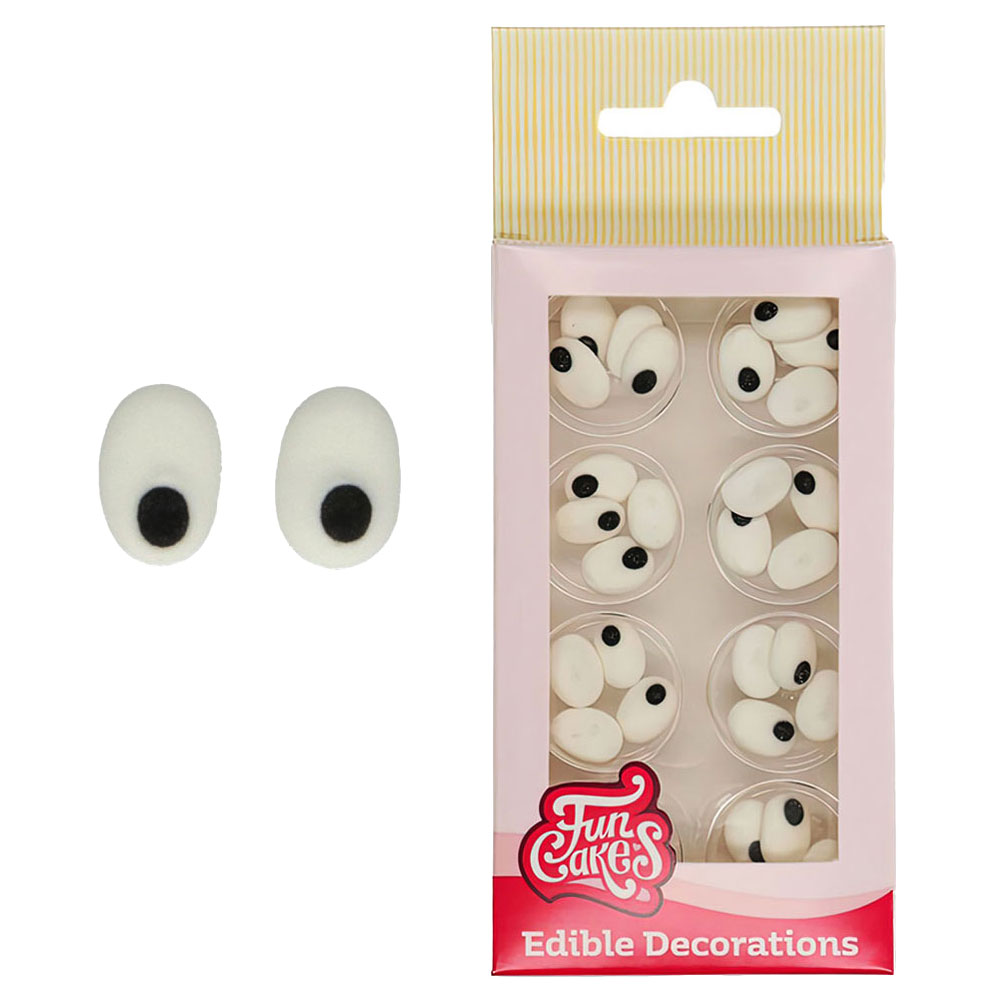 Skapa roliga djur dekorationer med FunCakes sockerdekorationer på dina cupcakes och kakor, dessa ovala socker-ögon kommer vara det som ger de liv! Ätbara tårt-dekorationer med ovala ögon är kul att skapa ansikten på både brownies och tårtor till kalas.