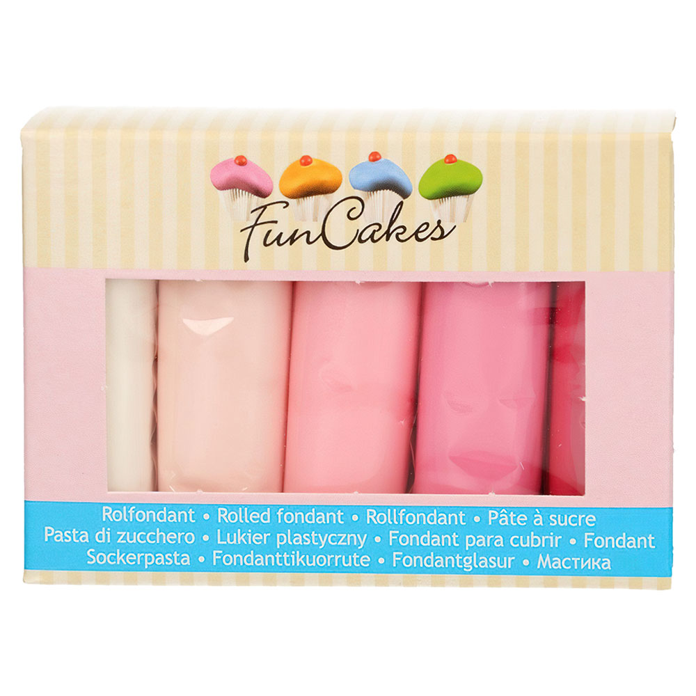Skapa riktigt imponerande dekorationer till dina bakelser i snyggt vitt och rosa med denna tjusiga sockerpasta! Ett 5-pack sockerpasta i vitt och olika nyanser av rosa som du enkelt kan skapa massor av fina dekorationer med. Perfekt fondant till exempelvis barnkalas, baby shower, dop och andra firanden i rosa.