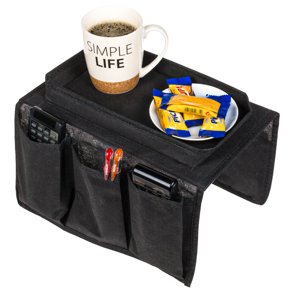 Håll reda på tvns fjärrkontroller med denna praktiska sofforganisatör! En super smidig armstödsförvaring med totalt fem fickor som passar perfekt för fjärrkontroller och andra prylar som lätt försvinner bland soffans dynor. Organisatörens ovansida kan du använda som bricka till exempelvis en skål med snacks, ett glas eller liknande som du vill ha lättillgängligt från soffan. Denna armstödsförvaring är med andra ord ett helt perfekt sofftillbehör för dig som har tröttnat på att leta efter borttappade prylar mellan soffkuddarna. Utmärkt soff-ficka som passar till flera olika typer av soffor.