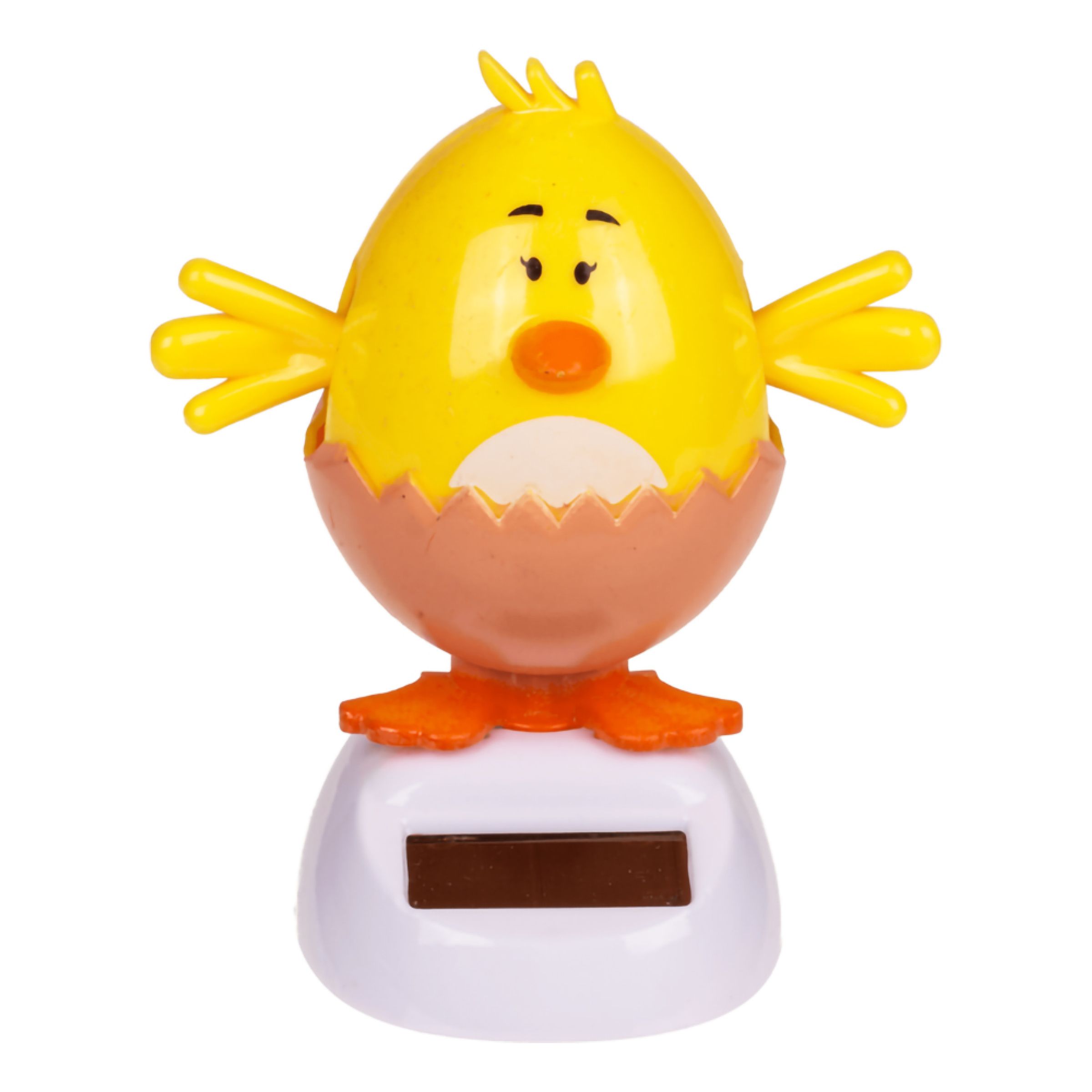 Solcellsfigur Kyckling är en gul kyckling som dansar när den träffas av solens varma strålar. En mycket rolig pryl att ha på fönsterbläcket eller i bilen. Vem blir inte glad av lite kycklingdans?
