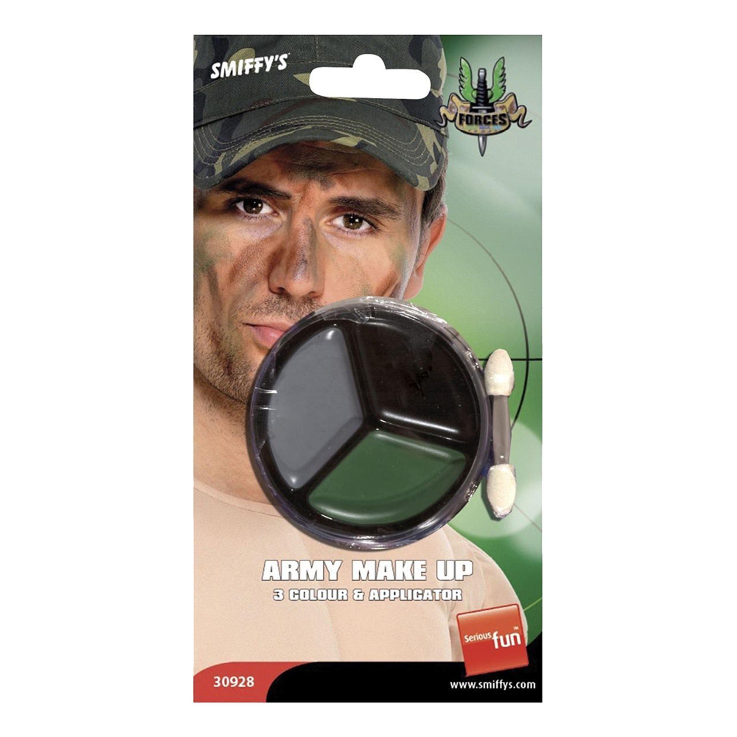 Med det här sminksetet fullbordar du din militärkostym på tuffast tänkbara sätt. Sminksetet har tre färger, och det medföljer verktyg för att utföra själva sminkningen.