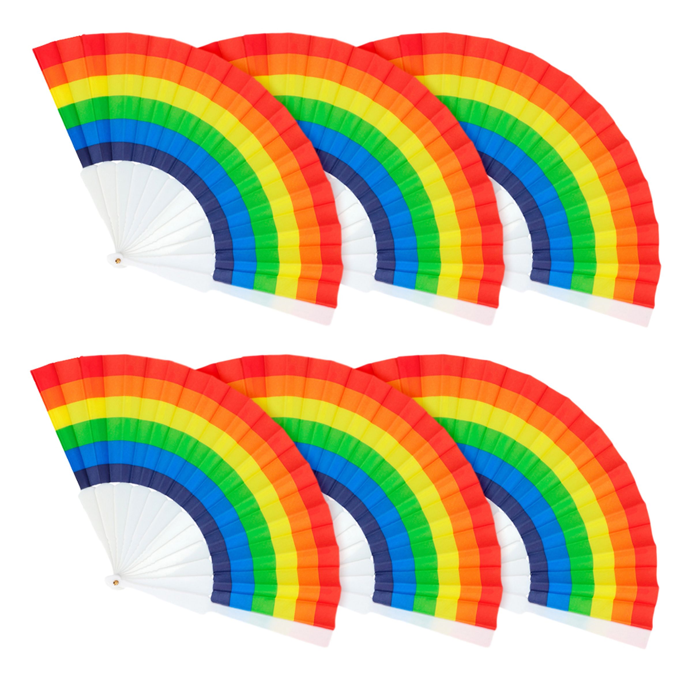 Solfjäder Pride finns att välja mellan i paket om en (styckvis) och sex stycken (6-pack) vilket passar perfekt till årets Pridefest. Stommen av solfjädern är tillverkad av plast och pappret är tillverkat av papper som färgats med regnbågens färger.